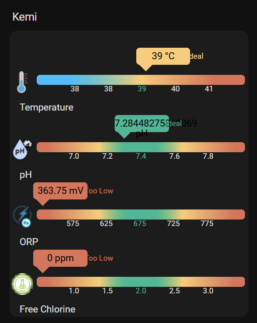 Det er vigtigt at holde styr på kemien i ens spa. Mange bruger manuelt strips eller kemitestere for at finde PH-nivaue og klor niveauer. men som Home Assistant entusiast, så vil vi selvfølgelig kunne se disse data i Home assistant og følge med i udviklingen