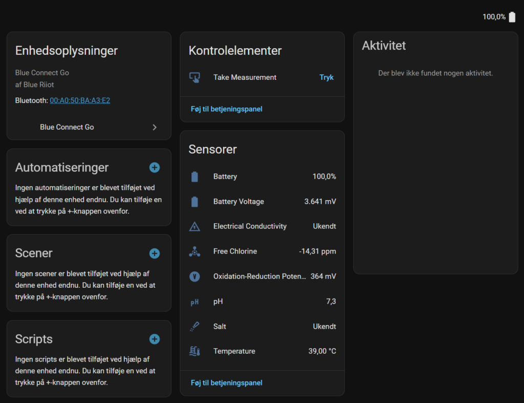 Blue Connect Go kan måle disse værdier periodisk og sende data via Bluetooth til deres app, men også til Home Assistant